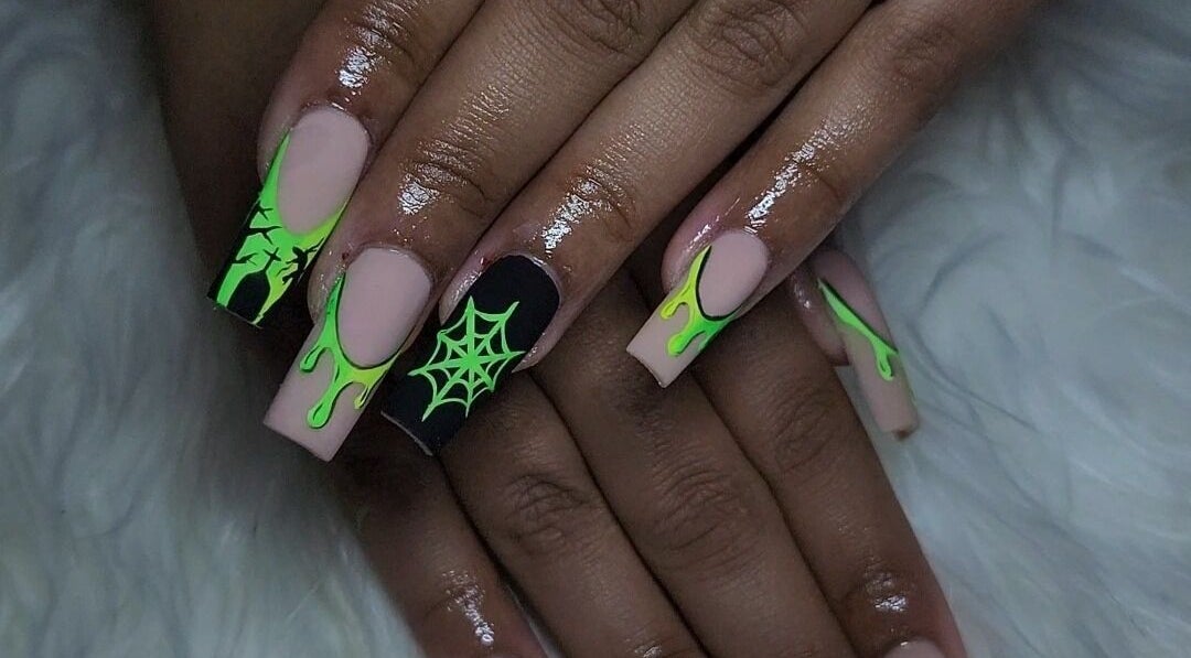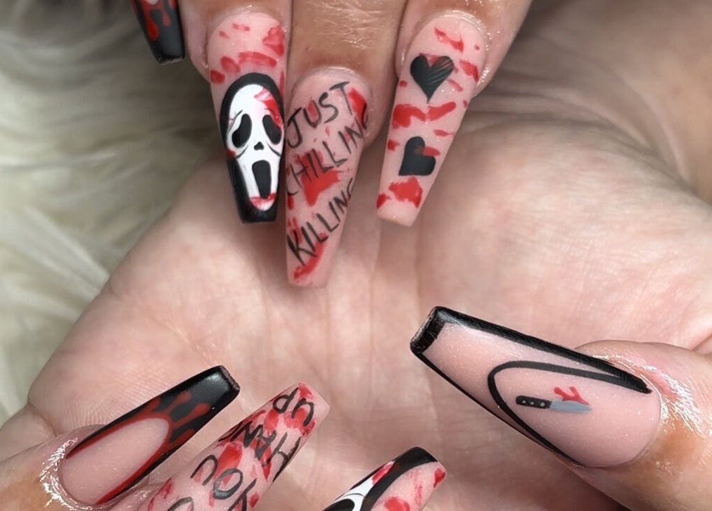 Audra SLAYED as always! My nails are so detailed!! Thank you again!! HHN theme she can do anything!