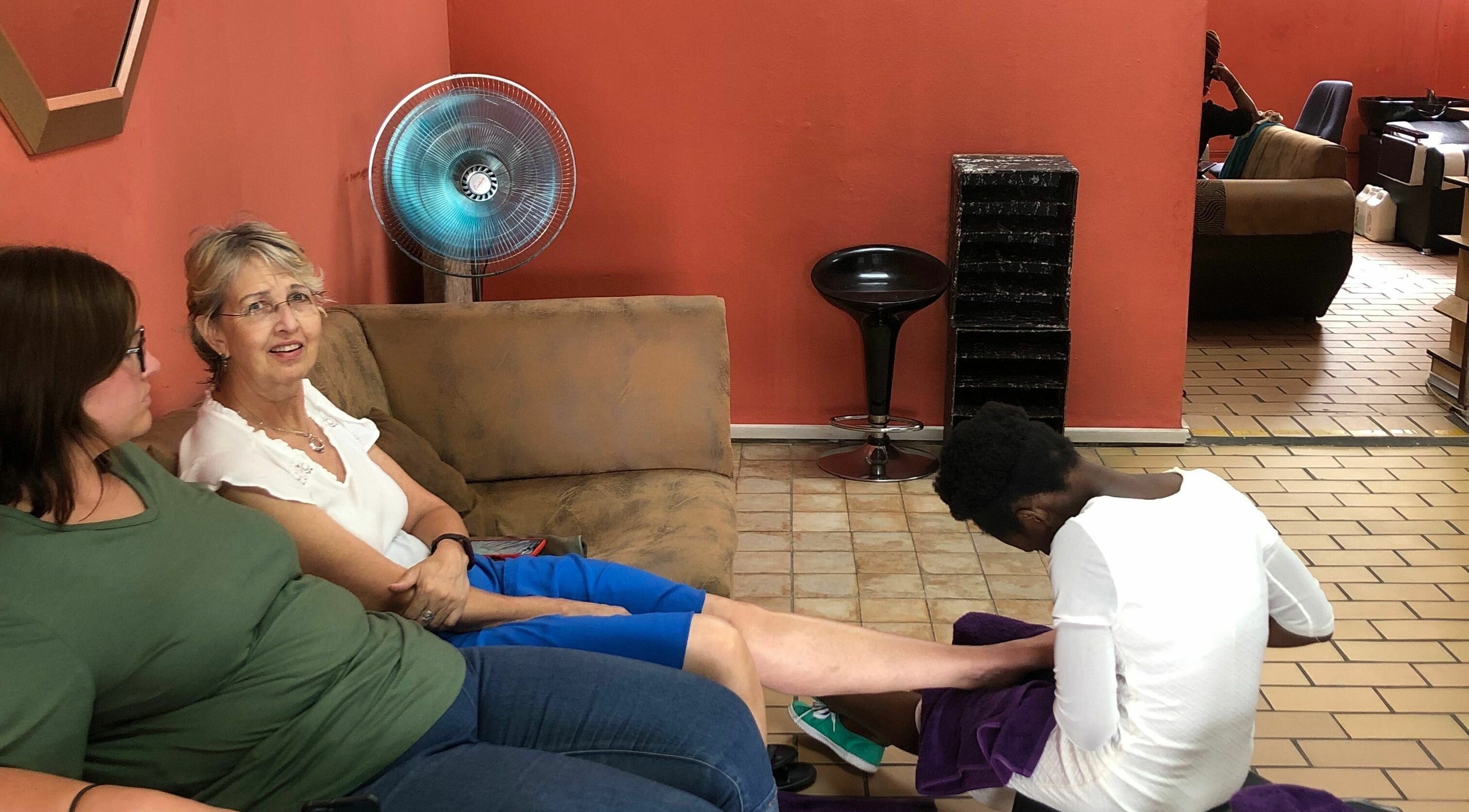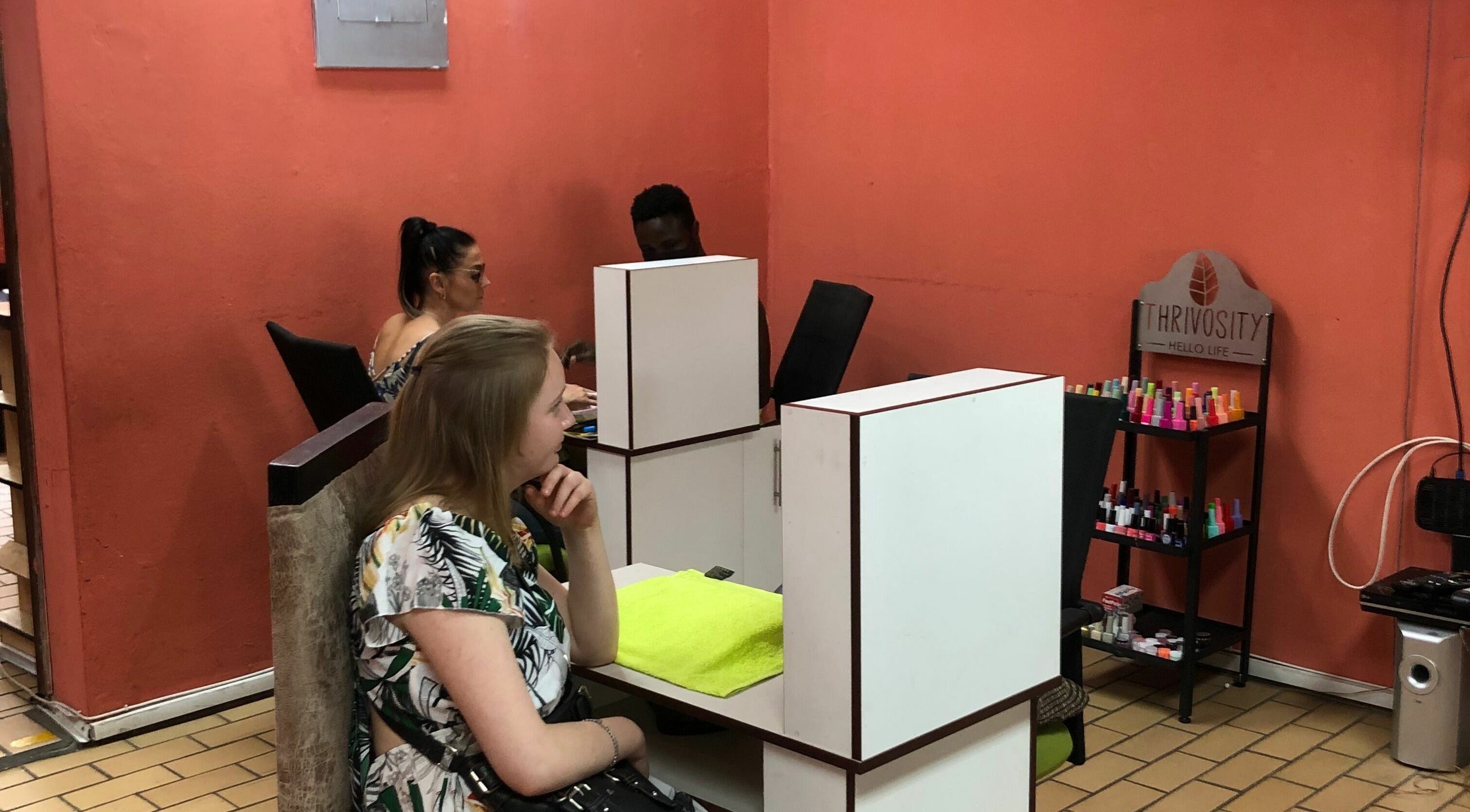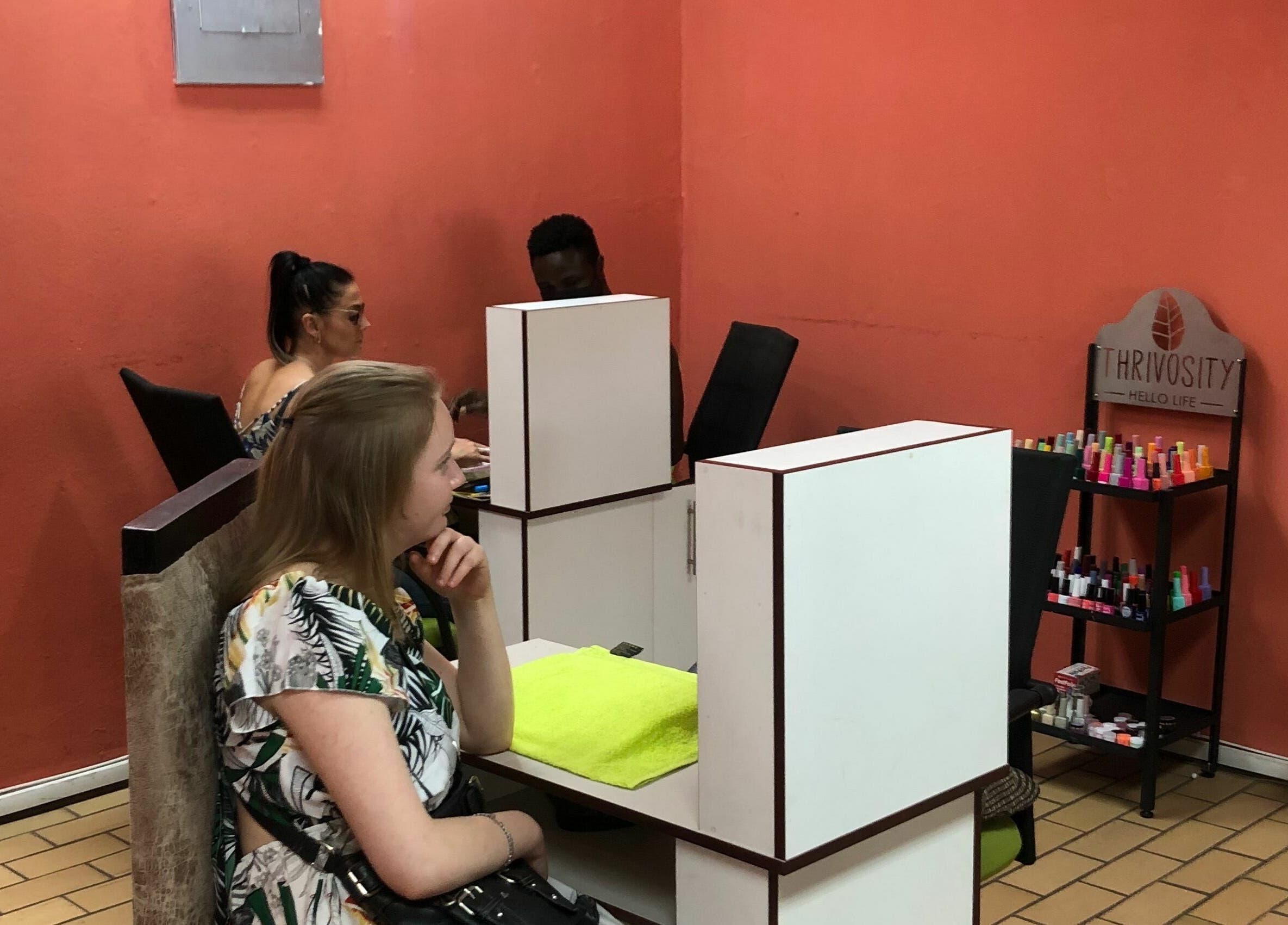 Davido Beauty Parlour is a nail and hair salon catering to both men and women. The nail salon provides treatments for hands and feet, including manicures, pedicures, and nail repair. The hair salon offers a range of services, including dye, braids, bonding, and Brazilian treatments.