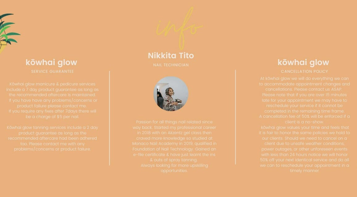 Welcome to Kōwhai Glow in Waiau Pa, where beauty flourishes. Indulge in the artistry of manicures, nurturing your hands with precision and care. Elevate your style with bespoke nail art, a canvas for your self-expression. Rejuvenate with our luxurious pedicures, ensuring every step feels like a dream. Embrace glamour with gel nail extensions, adding sophistication to your fingertips. Achieve a sun-kissed radiance with our flawless spray tanning. At kōwhai glow, we craft beauty that illuminates from within, making every visit a celebration of your unique glow.