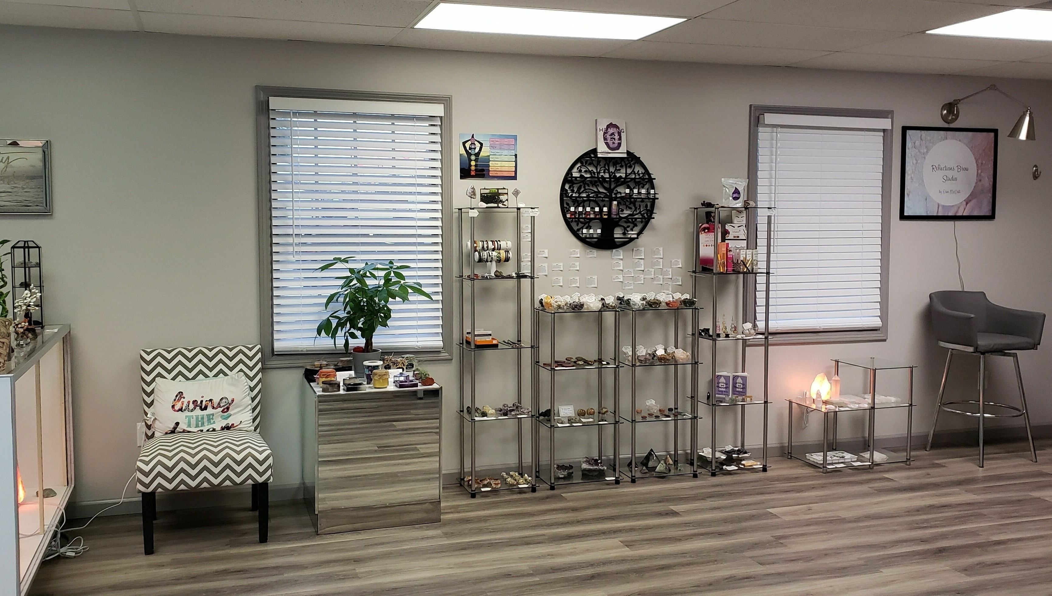 Reflections Beauty & Wellness is a nurturing space where beauty and wellness come together. Enjoy expert brow shaping, facial waxing, brow and lash tinting, lash lifts, and makeup application. Discover our newly added customized facials, tailored to your unique skincare needs, available in 30 or 60-minute sessions. Explore our private meditation suite, featuring Vibroacoustic Therapy, Sound Therapy, Guided Meditation, and more. These services are designed to promote relaxation and offer numerous health benefits. Take time for yourself—you deserve it!