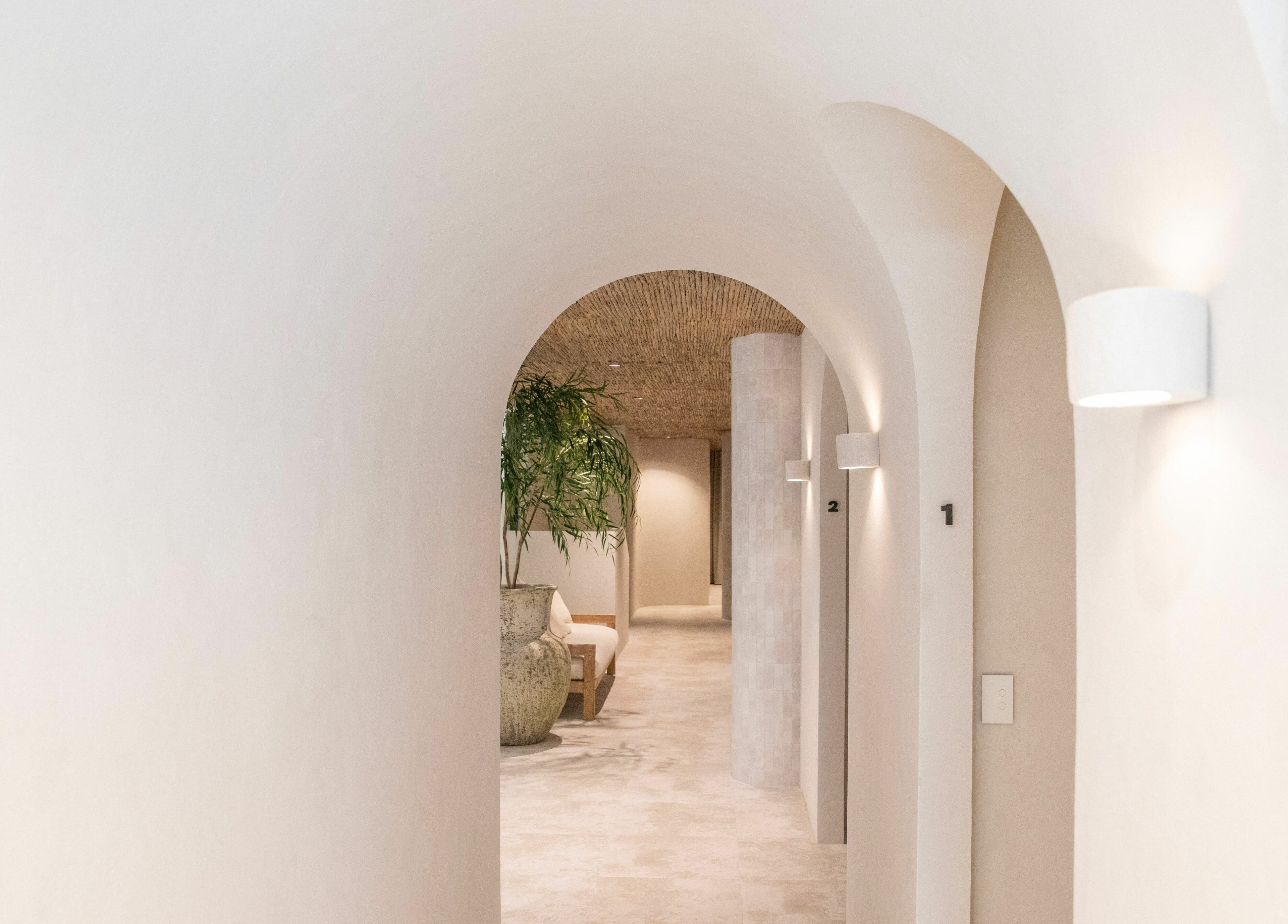 Our signature Mediterranean aesthetic of soft whites and raw textures is elevated by black accents and oversized marble features; the contrasting design elements a nod to the therapy itself. Our most luxurious space yet, the studio brings to life the notion of relaxed sophistication.
