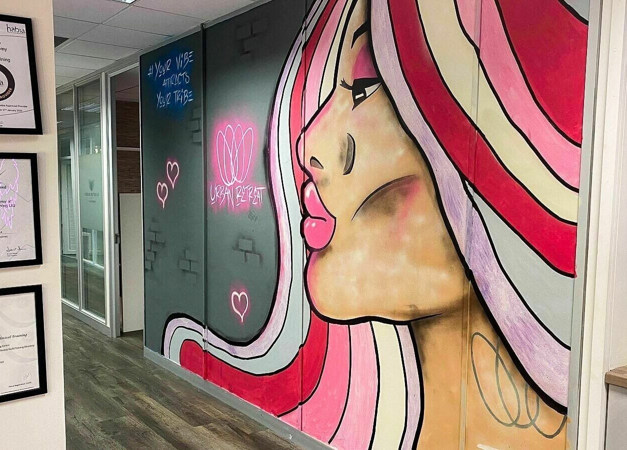 Our vibe is funky, fierce and fun; you’ll love our neon angel wings and graffiti wall. Pop into the salon and see us soon!