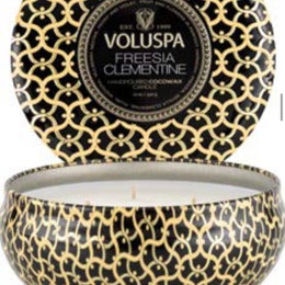 Voluspa Freesia Clementine 3 wick tin candle- 40 hrs burn