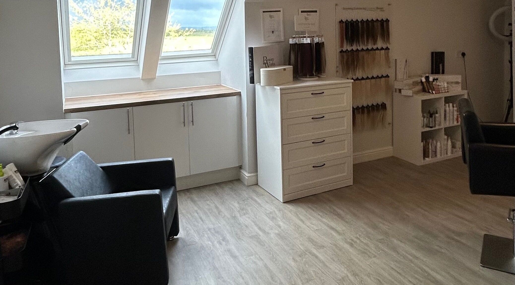 I rent a chair at Hair By Sophie, the bungalow hair salon on the right just after you’ve driven onto the trading estate. It’s very light and airy and has a carpark just on the right as you drive past the salon.