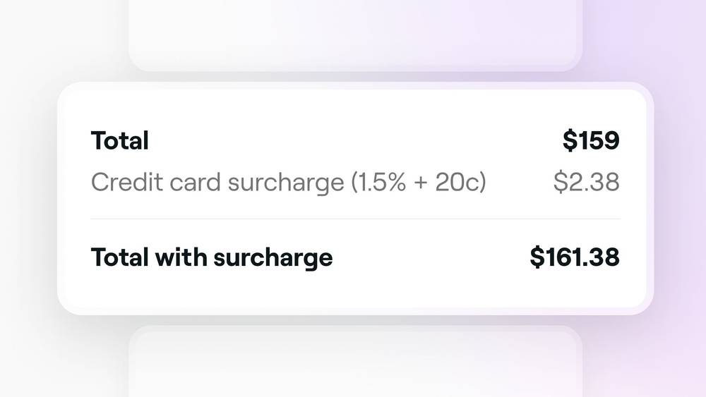 A surcharge (also known as a checkout fee) is a fee added to a client’s bill when they pay by card. This helps your business cover processing costs, where it’s allowed by law.