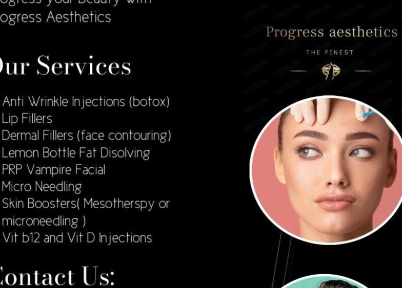 Progress Aesthetics is a space where beauty and self-care come together in a welcoming and professional environment. With a focus on enhancing your natural features, every treatment is designed to provide noticeable results and leave you feeling refreshed and confident. Whether you’re seeking rejuvenating skincare, anti-aging treatments, or a boost of radiance, the goal is to offer personalized care tailored to your unique needs, ensuring a truly transformative experience.