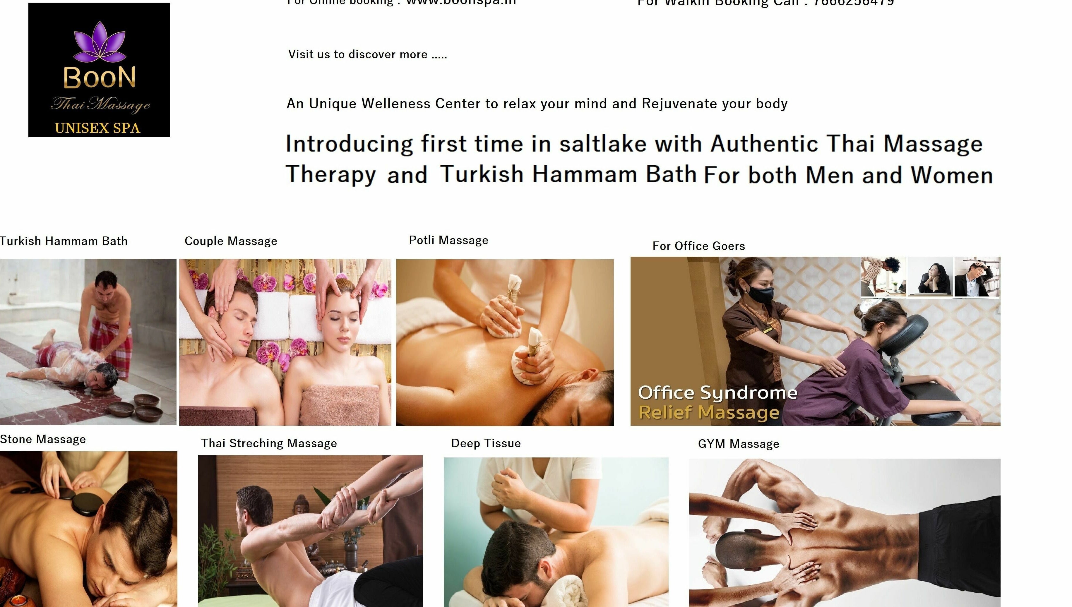 Unique Wellness Center to relax your mind and Rejuvenate your body . Introducing first time in saltlake with Authentic Thai Massage Theraphy and Turkish Hammam Bath both for Men and Women . 100% certified Thai therapist . Visit us to discover more