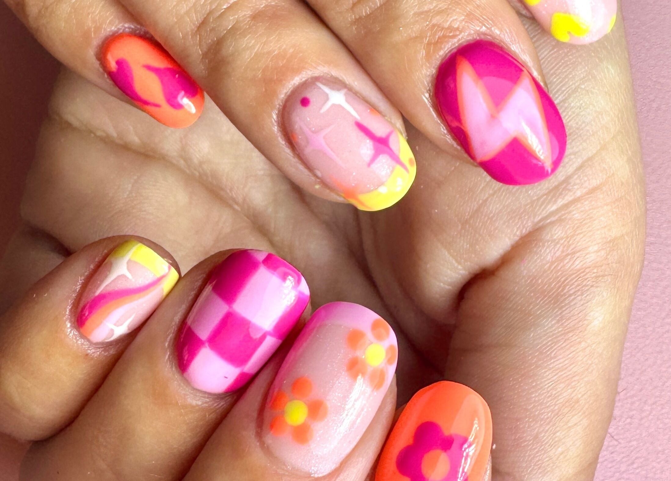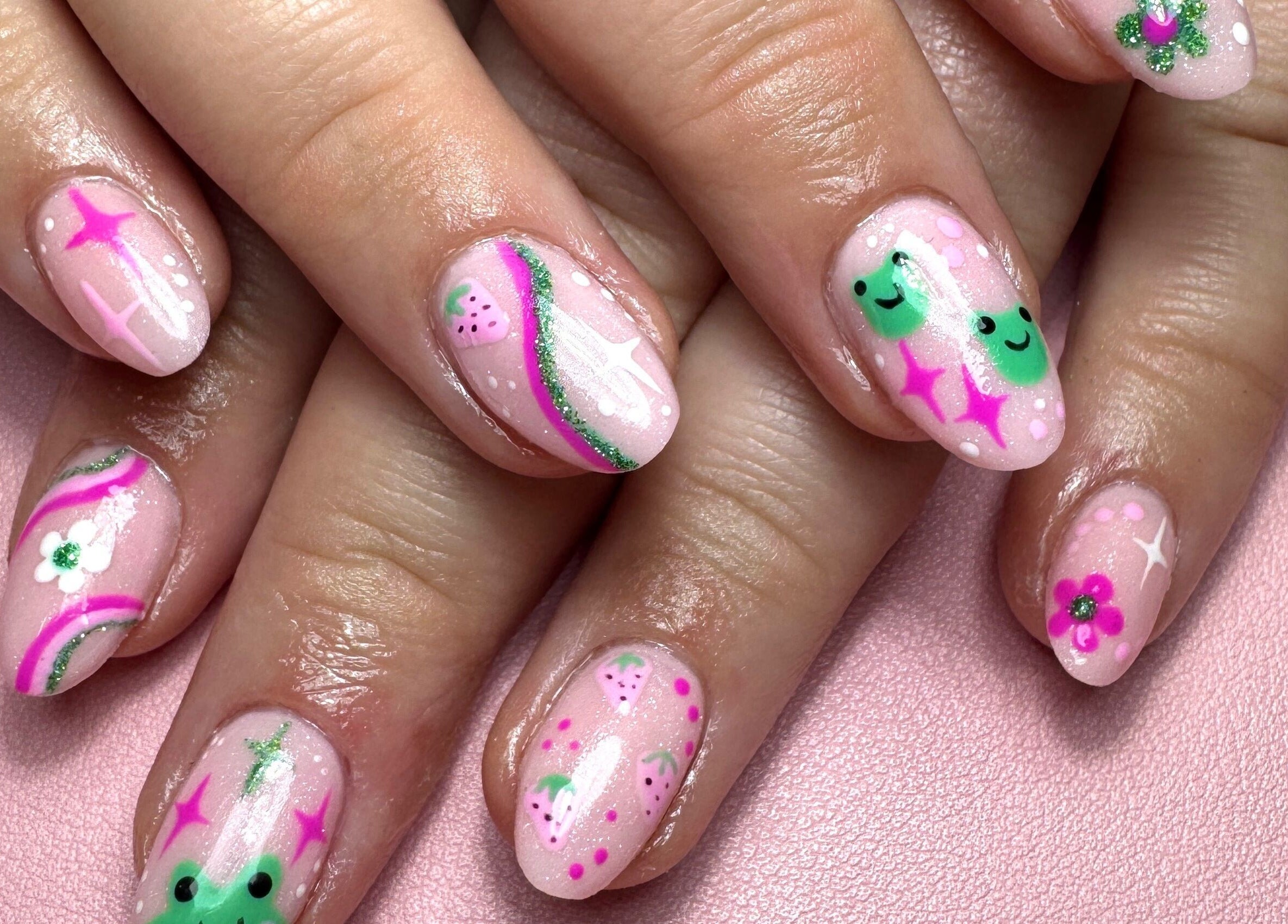 I am a fully qualified nail tech based in Old Town, Swindon, Wiltshire. I specialise in Gel manicures/pedicures, BIAB manicures on natural nails and Gel extensions. My nail art is all freehand and I love experimenting with new designs and challenges my clients come in asking for my favourite nails to do are BIAB with unique designs on each nail, however I also love a simple French tip with gold isolated chrome.