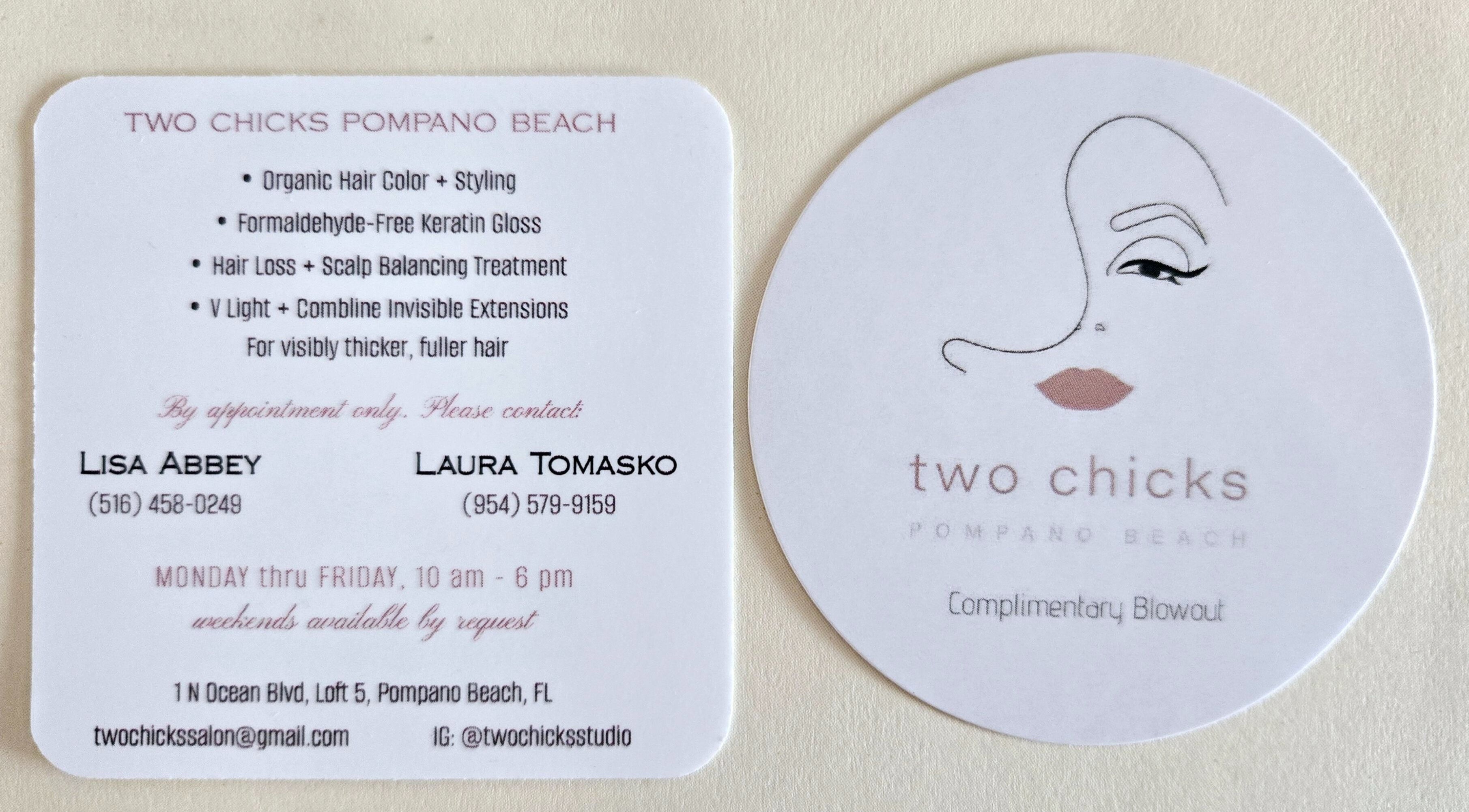 Welcome to Two Chicks Pompano Beach! We offer a variety of hair treatments, coloring, and styling in an intimate, serene setting.