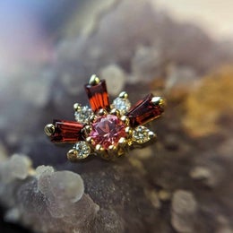 Lyra - Tourmaline Quartz & Black Spinel & CZ - Threadless end 14Kt Gold