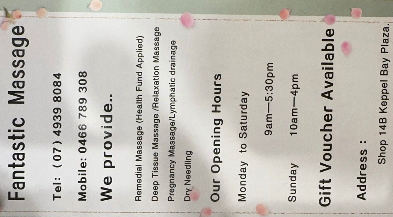 Welcome to fantastic massage, where relaxation and rejuvenation await. We specialize in remedial and relaxation therapies tailored to your needs.