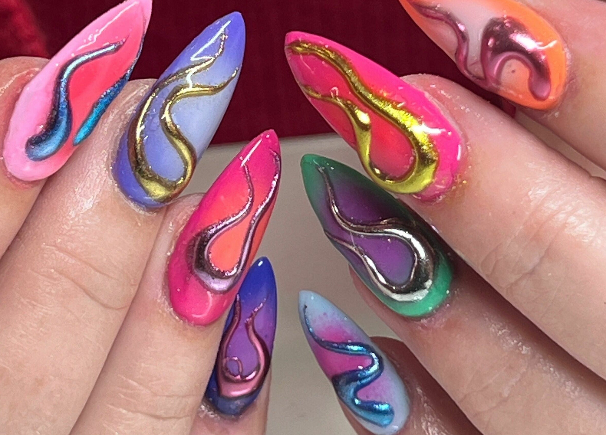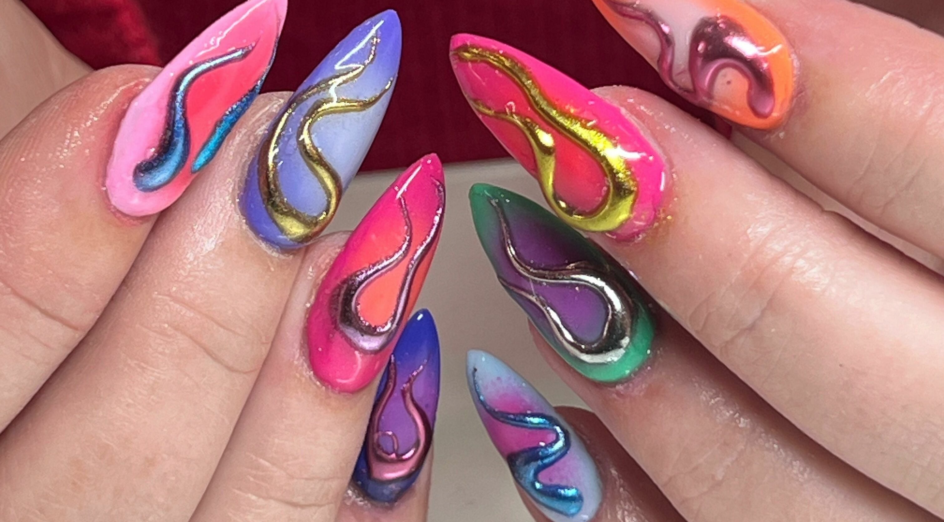 Nail Artist based from a private studio in the heart of Brighton within The Lanes. I offer gel services such as Builder Gel Manicures and Gel-X Extensions, and specialise in custom nail art. Hit me with your wildest nail art requests, I'm down! I especially love 3D designs, very maximalist artistic sets, lots of texture and interesting colour combos, and GEMS.