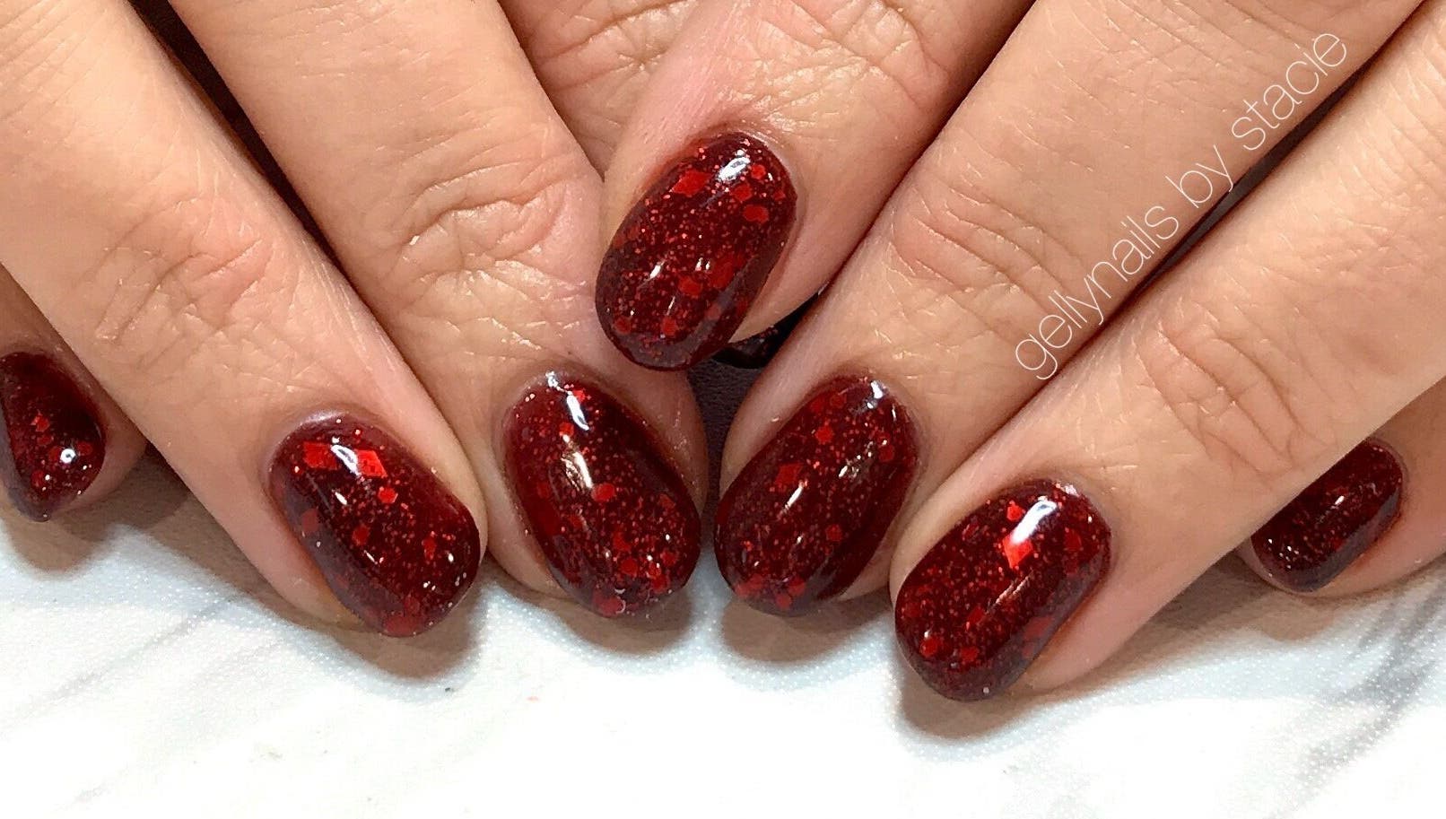 Stacie Kaefer: Professional nail artist specializing in hard gel nail enhancements.