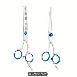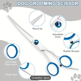 Stainless Steel Dog Grooming Scissors Set with Safety Round Tips - 2-in-1 Pet Grooming Kit