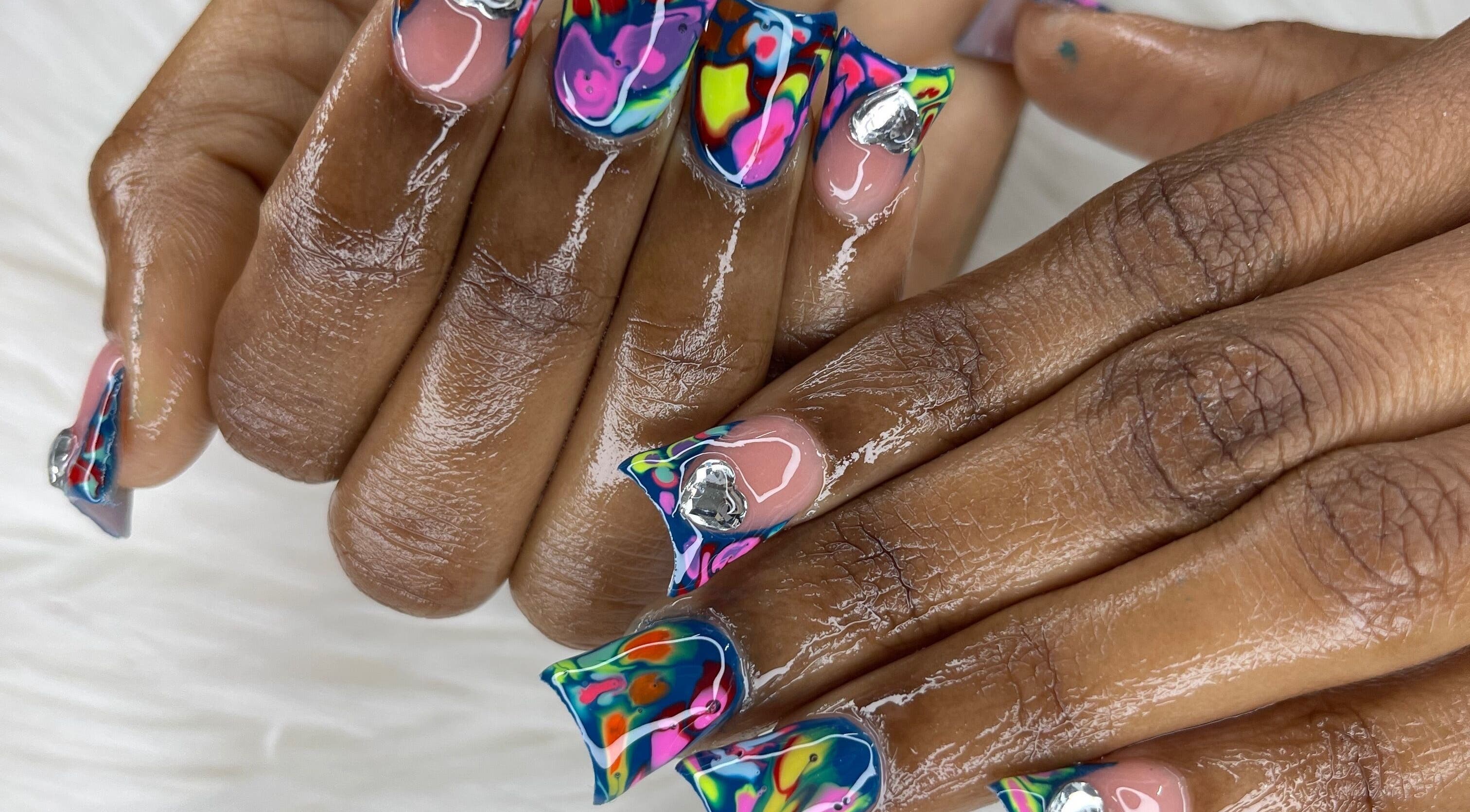 I provide nail care for both male and female, and the most current enhancements and extensions in a clean and friendly environment. In the salon there’s also a hairstylist(at Morgan the hair guru) and a lash tech(at eye allure) making it your one stop shop for all your self care services.